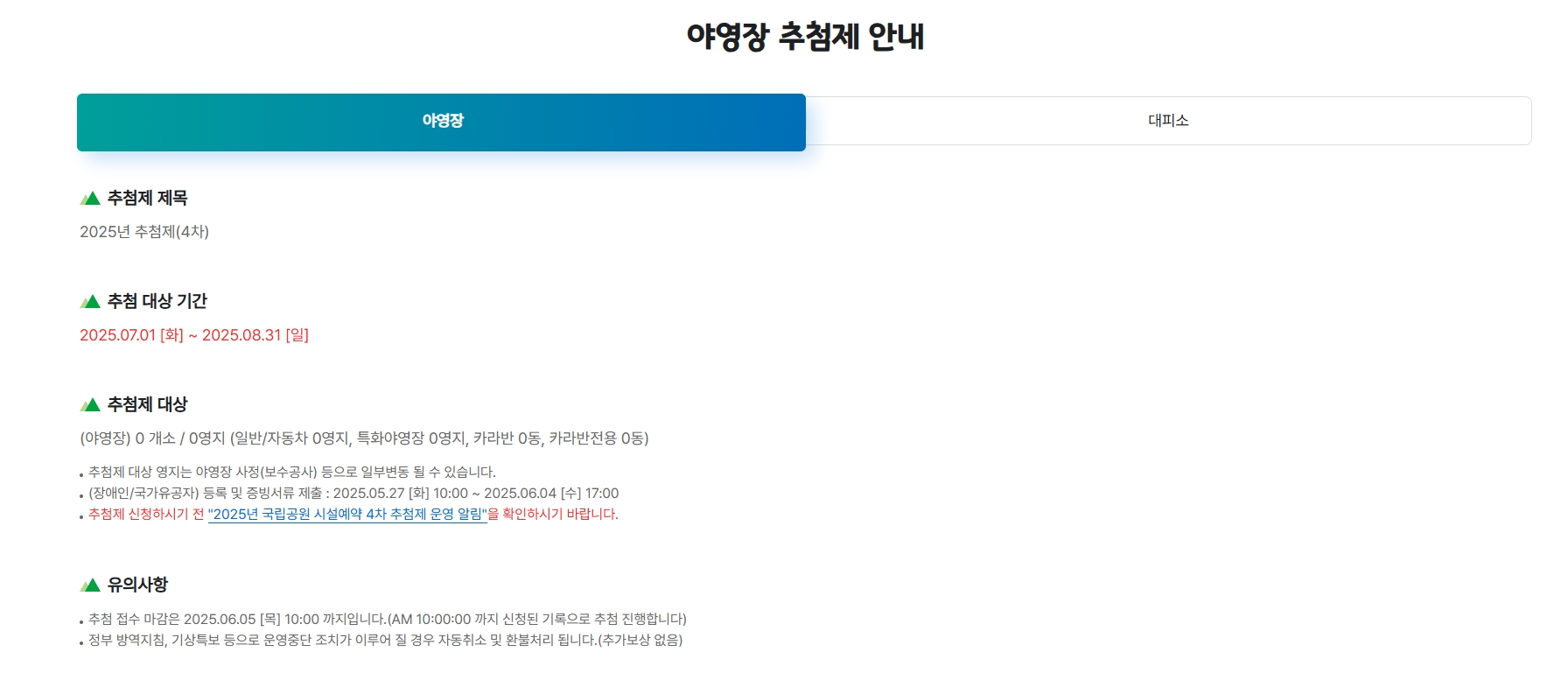 👉 대피소·야영장 취소는 마감일 전까지 가능, 환불 규정 확인 필요!
