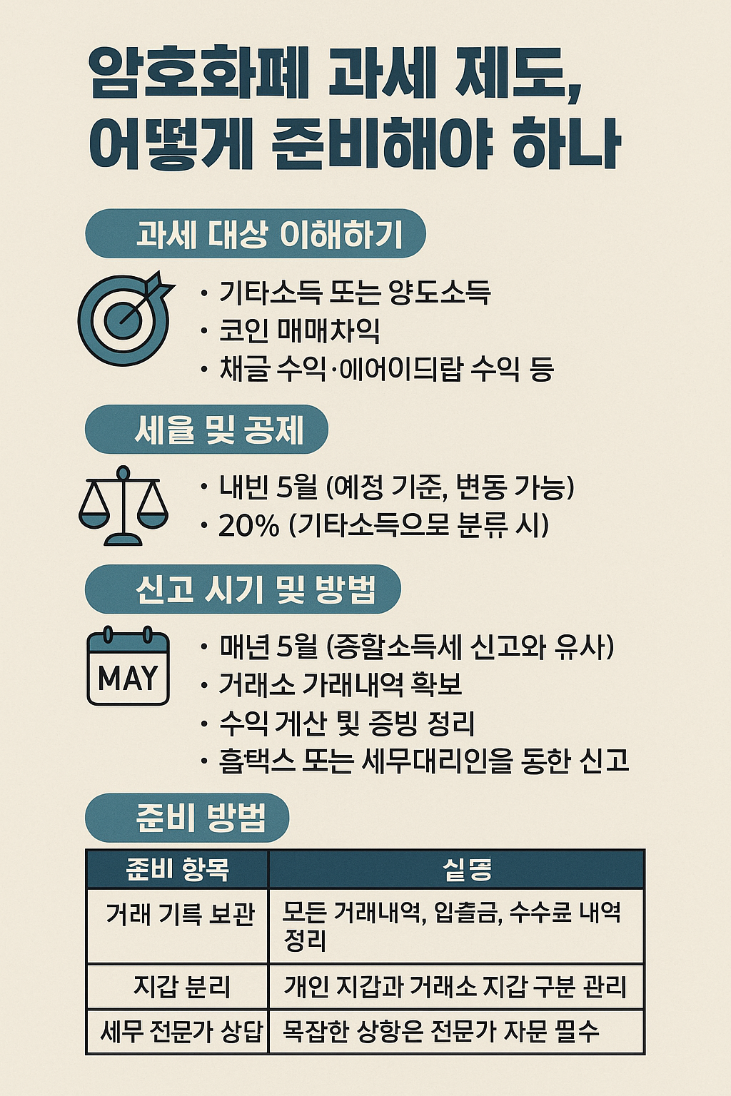 2025년부터 암호화폐 투자 수익에 세금이 부과된다는 사실, 알고 계셨나요? 비트코인, 이더리움 같은 가상자산을 거래하면서 수익이 발생했다면 이제는 세금 신고를 피할 수 없는 시대가 됩니다. 하지만 정확한 기준과 준비 방법을 아는 사람은 많지 않죠. 이번 글에서는 복잡해 보이지만 꼭 알아야 할 '암호화폐 과세 제도'의 핵심 내용을 쉽고 실용적으로 정리해드립니다.