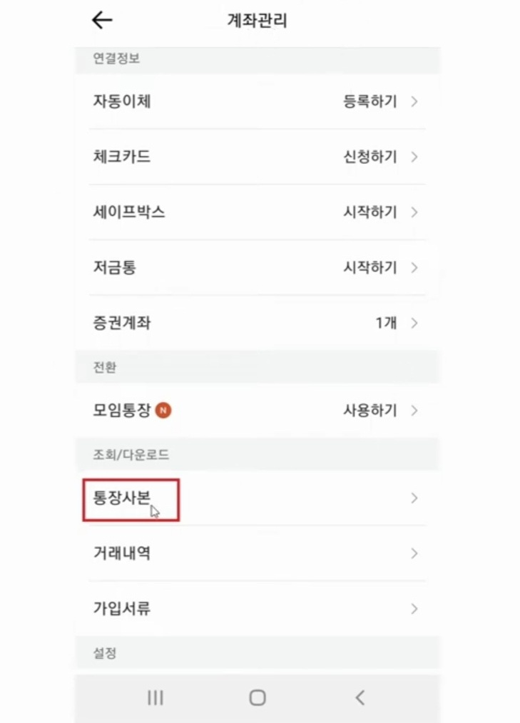 카카오뱅크 앱에서 통장사본 찾는 방법