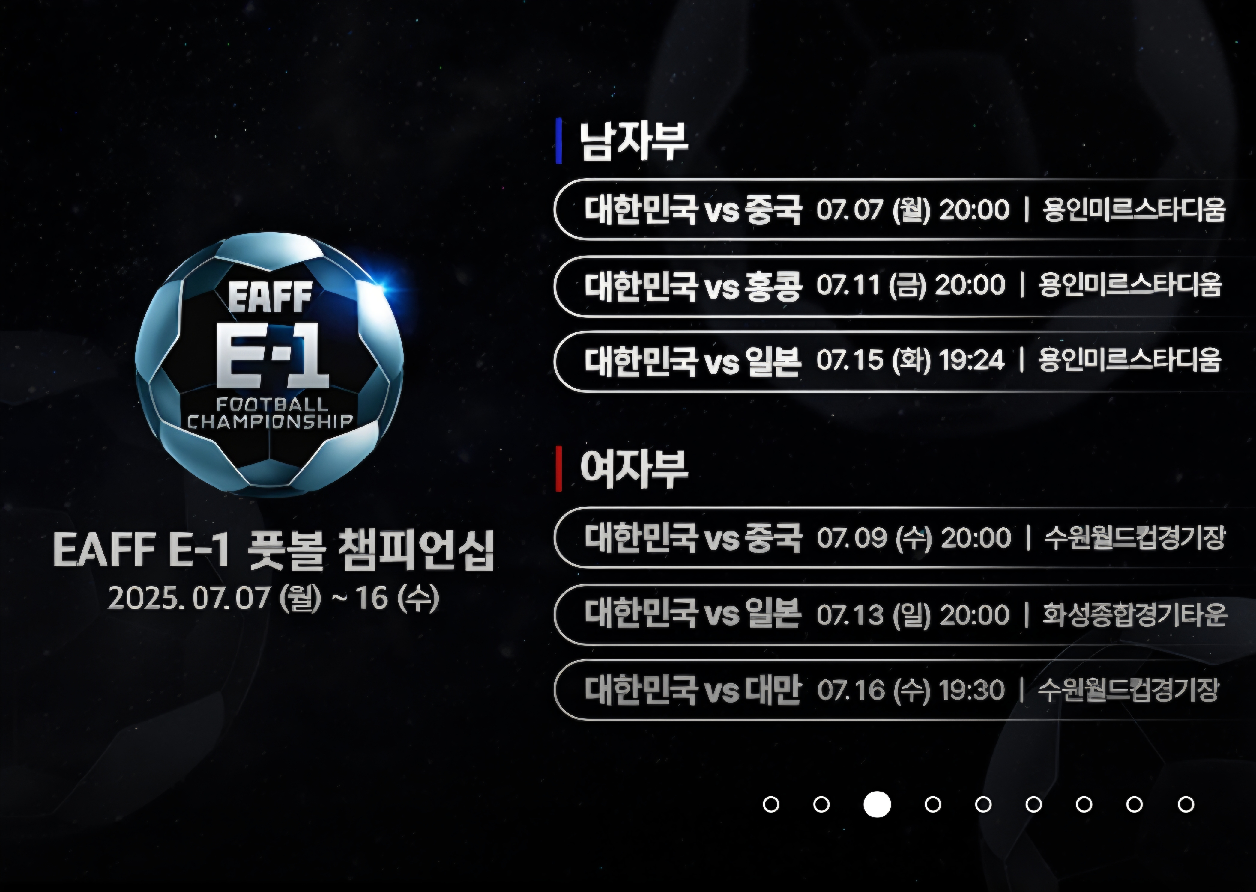 - 7월 16일(수) 19:30 vs 대만 – 수원월드컵경기장
